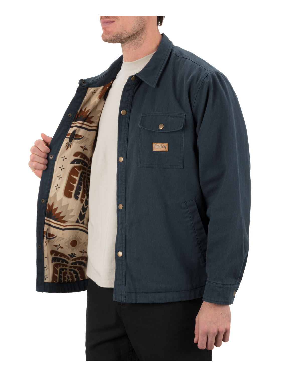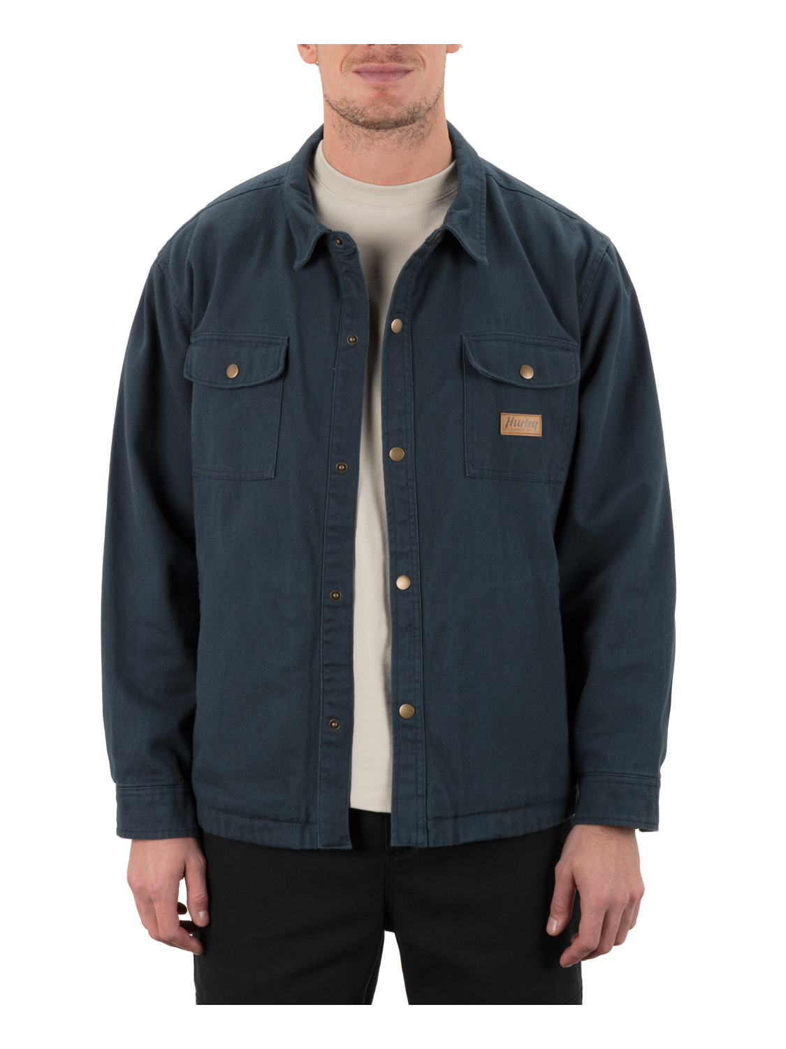 - Double chest pockets with flap and snap closure.
