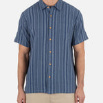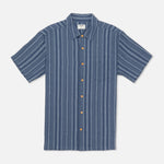 The Oceanside Short Sleeve is an easy-wearing button-up designed for comfort. Made from a lightweight linen blend, it features a subtle stripe pattern and a breathable feel, making it perfect for warmer weather.