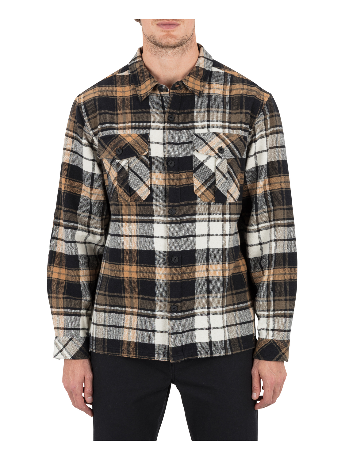 The Santa Cruz Seaside Flannel long sleeve is a classic layer with coastal character. Made from 100% cotton double brushed yarn dye for extra softness, it features double chest pockets with box pleats, self-fabric elbow patches, and a straight hem for a clean finish. Pleats at the back yoke add ease of movement, while a branded woven patch gives it a subtle signature touch.
