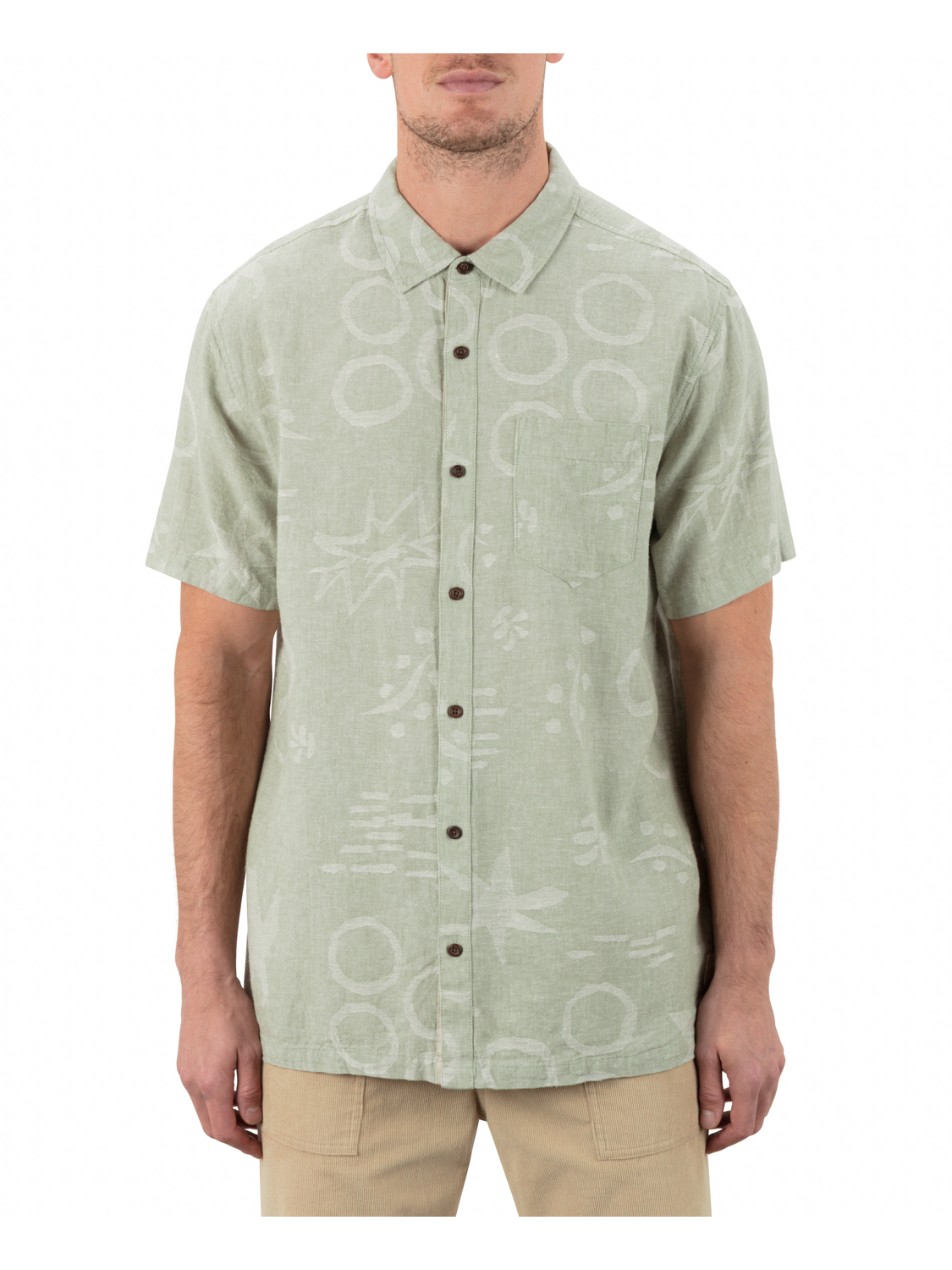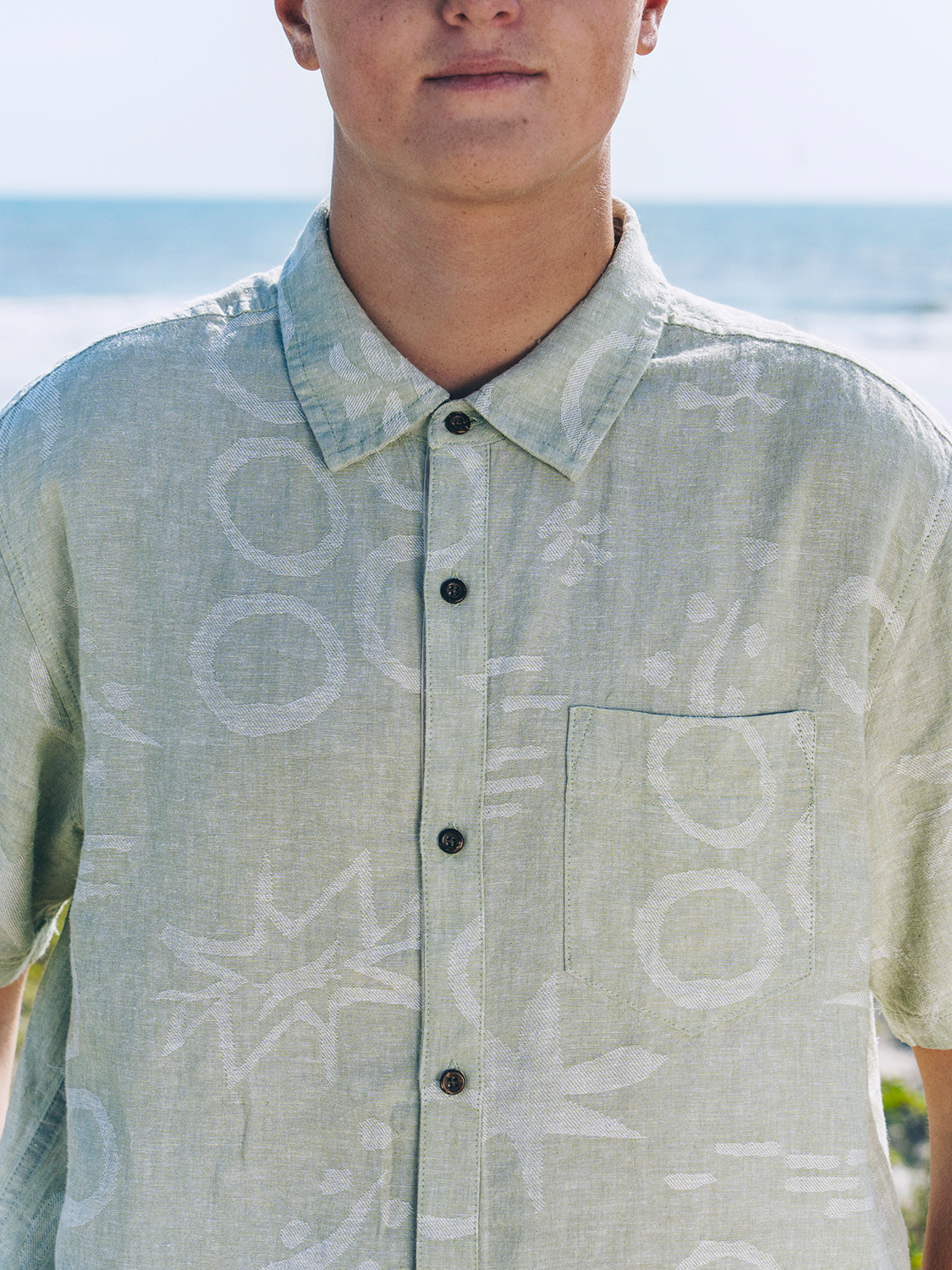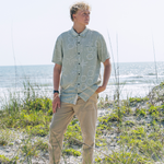 The Encinitas short sleeve is a laid-back button-up with natural texture and breathable comfort. Made from a linen-rayon blend, it features a straight hem, pleated back yoke, and chest patch pocket. Finished with coconut buttons and subtle embroidered details, it’s built for easy summer wear.