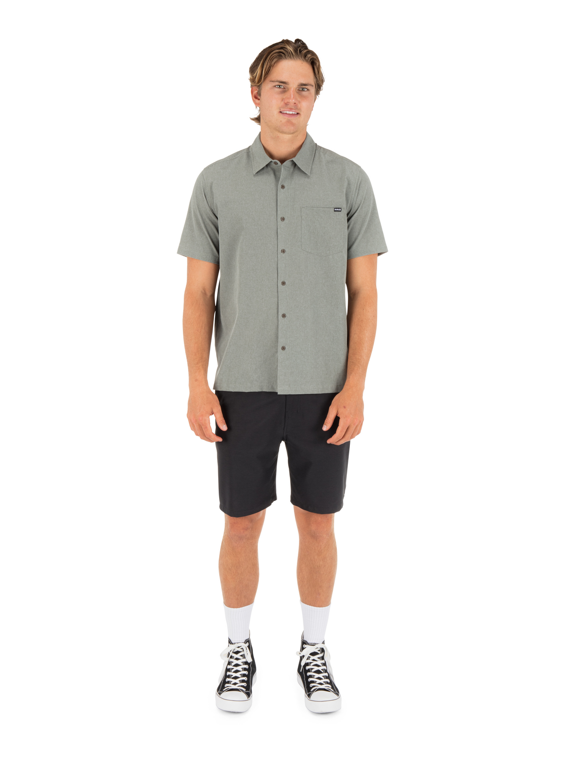 The Phantom Flow short sleeve keeps you cool when the heat’s on. Made from Phantom 4-way stretch perforated fabric with a DWR coating, it delivers breathability, mobility, and quick-dry comfort. Finished with recycled coconut buttons, a straight hem with side vents, and Phantom branding for a sharp look.