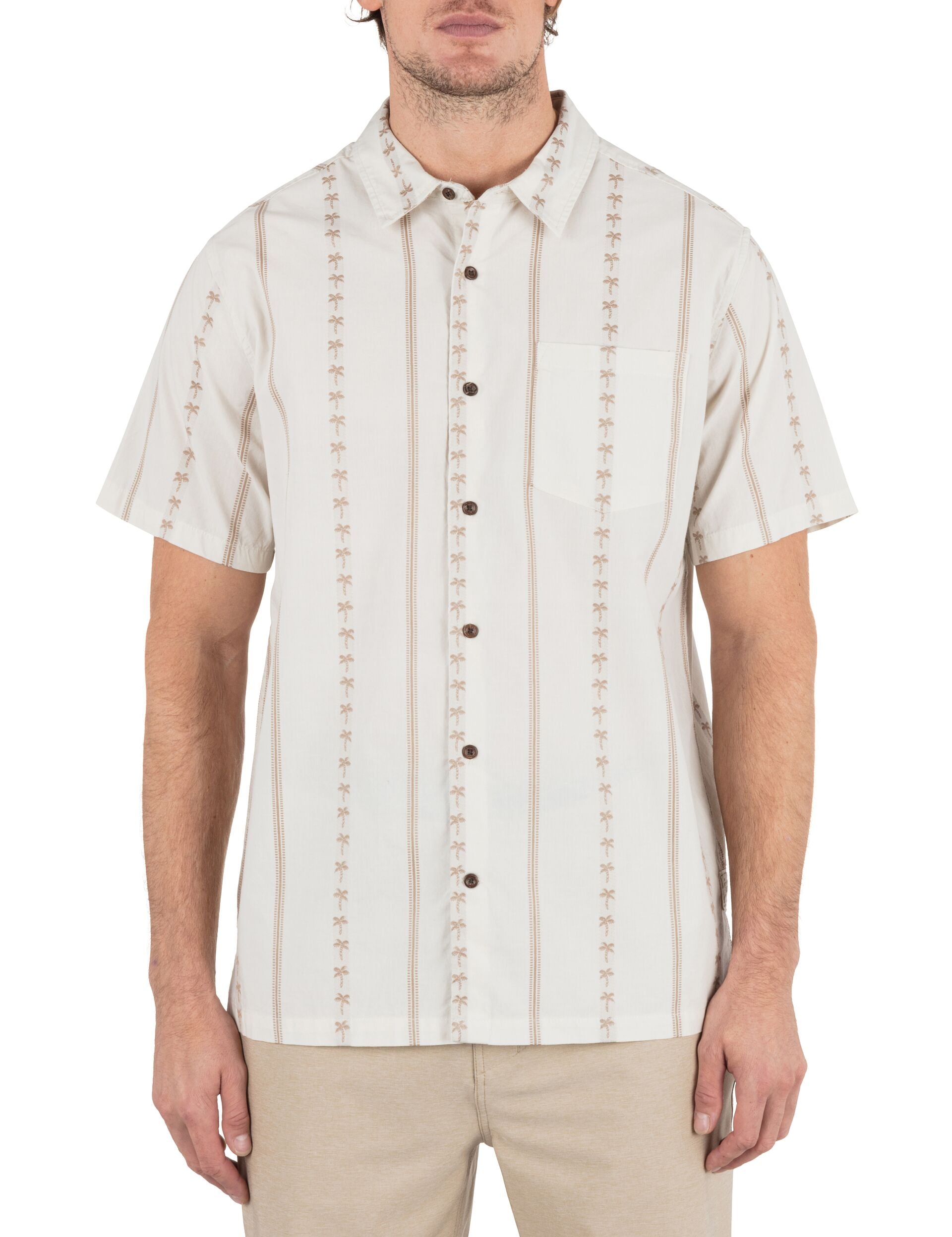 Keeping it classy in the Jacquard Rincon Short Sleeve Button-Down. Made from a cotton blend with straight hem side vents, this piece fits like a dream. We’ve detailed it with recycled coconut buttons and a palm tree jacquard print.